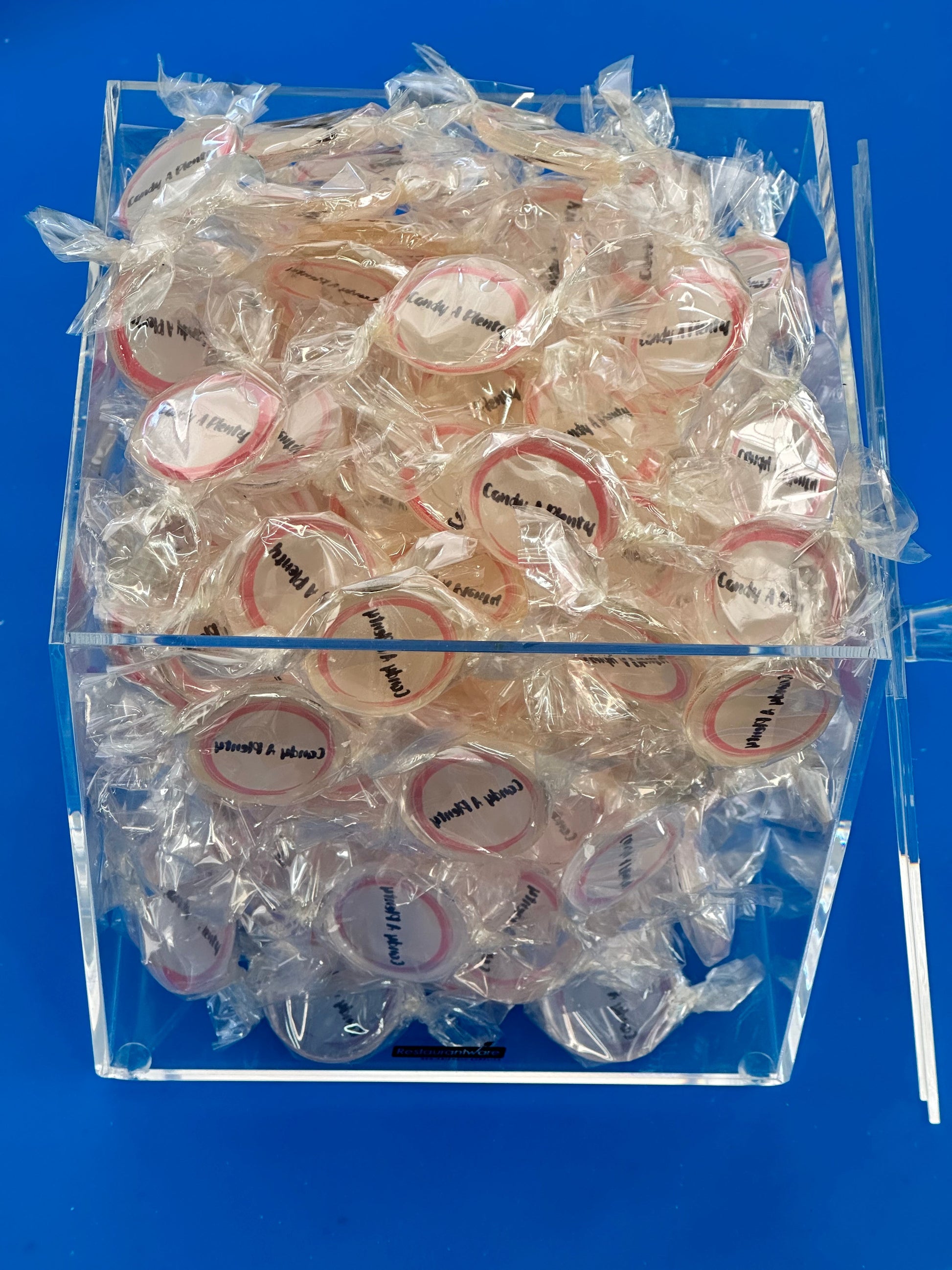These acrylic cubes come filled with your custom personalized LogoMints.